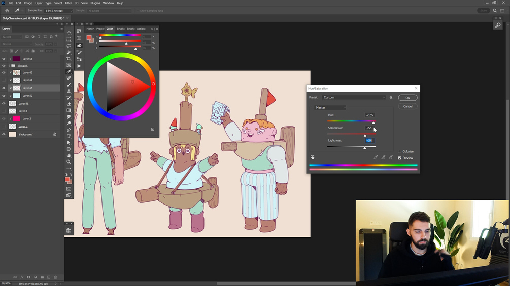 - Adding color, shadow and lights to the character designs.